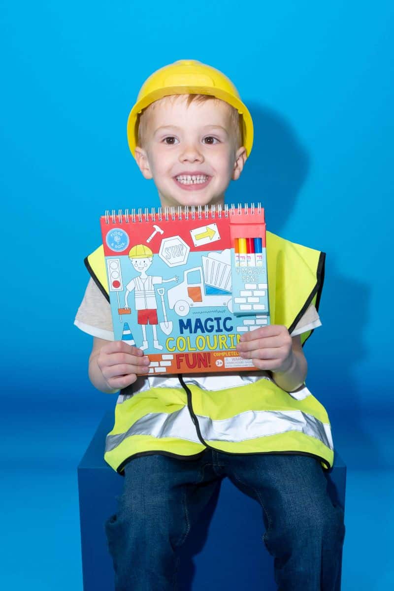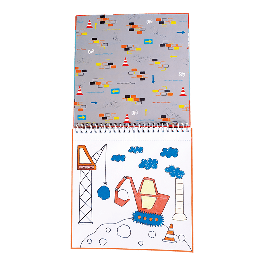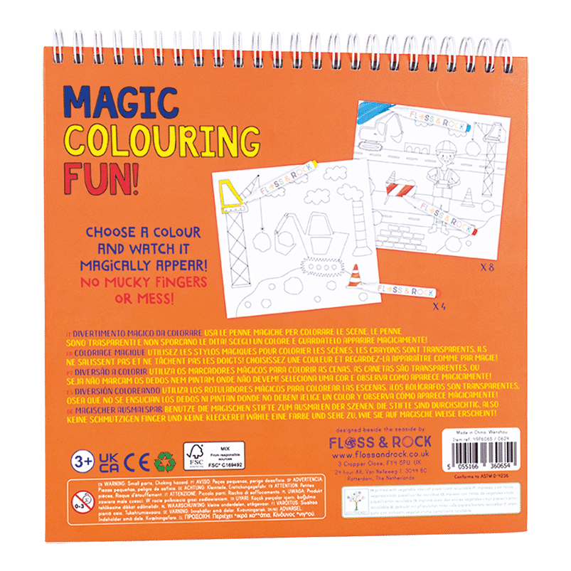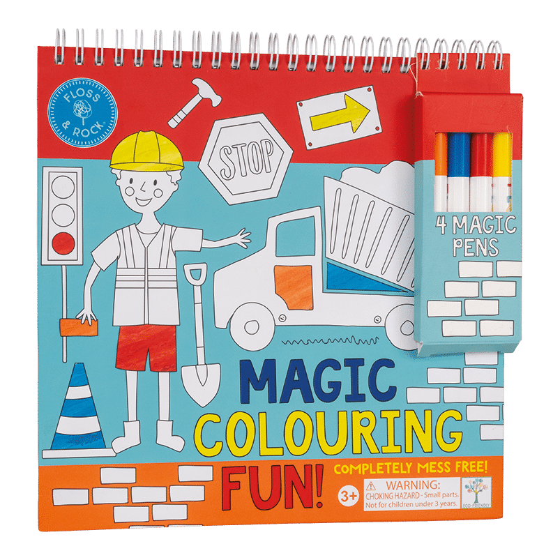 Say goodbye to mucky fingers and mess… Our magic colouring-in pens have invisible ink which only appears on our super fun pages! Choose a colour and watch it magically emerge on the page. Each spiral bound pad contains 4 magic pens and 8 colouring pages, this Construction design has diggers, builders, cranes, cones and more.