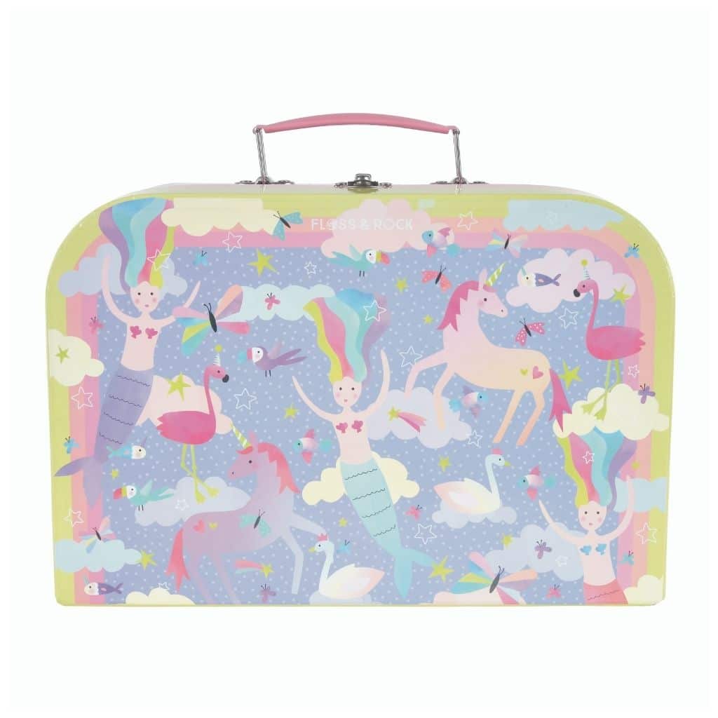 The brightly coloured box contains illustrations of unicorns, mermaids, flamingos, clouds, stars and more. Inside you’ll find a fantastic musical teapot (turn the winder underneath to play ‘twinkle twinkle little star’ as you pour tea for your guests).