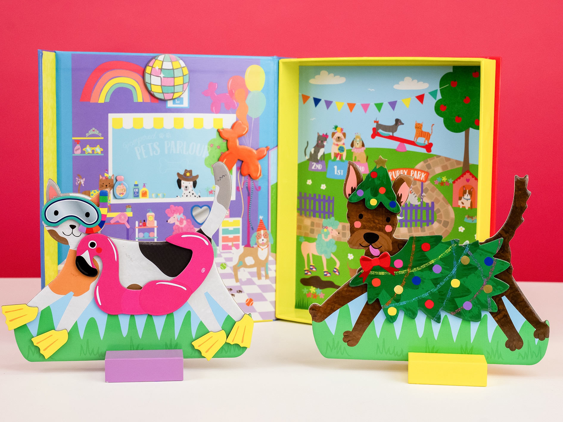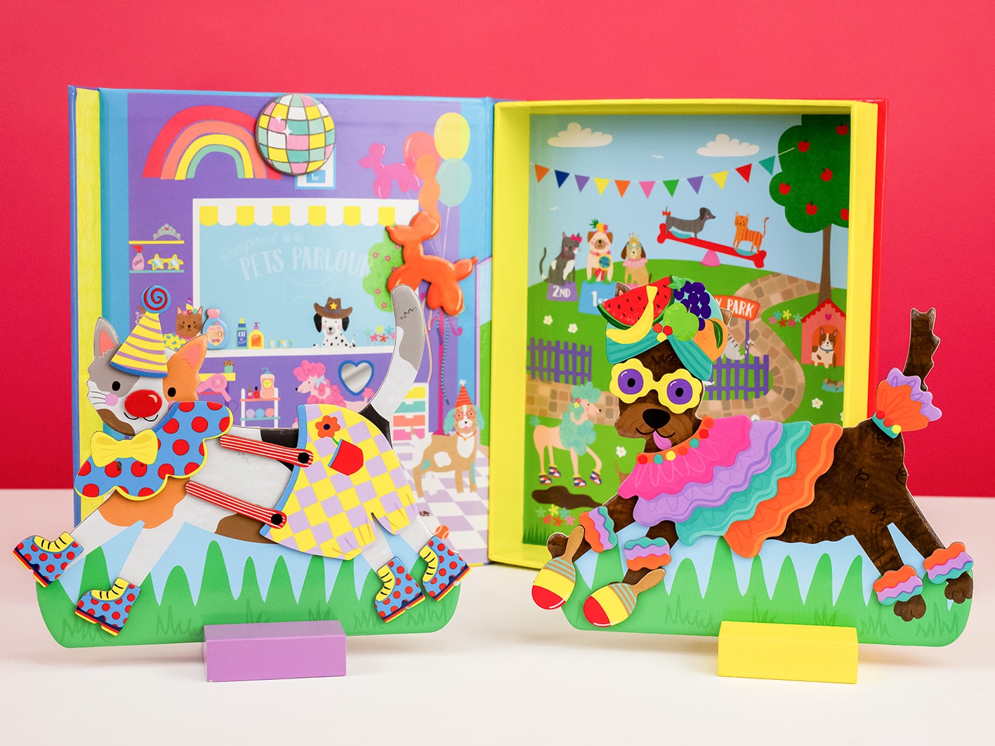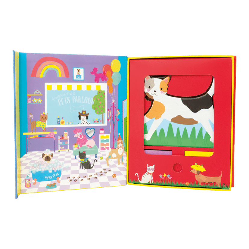 Box doubles up as a backdrop/play scene – with a magnetic scene on one side and a fun play scene on the other