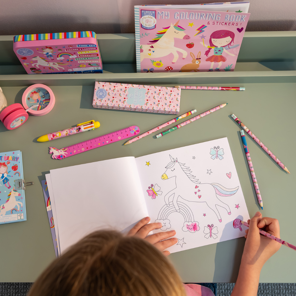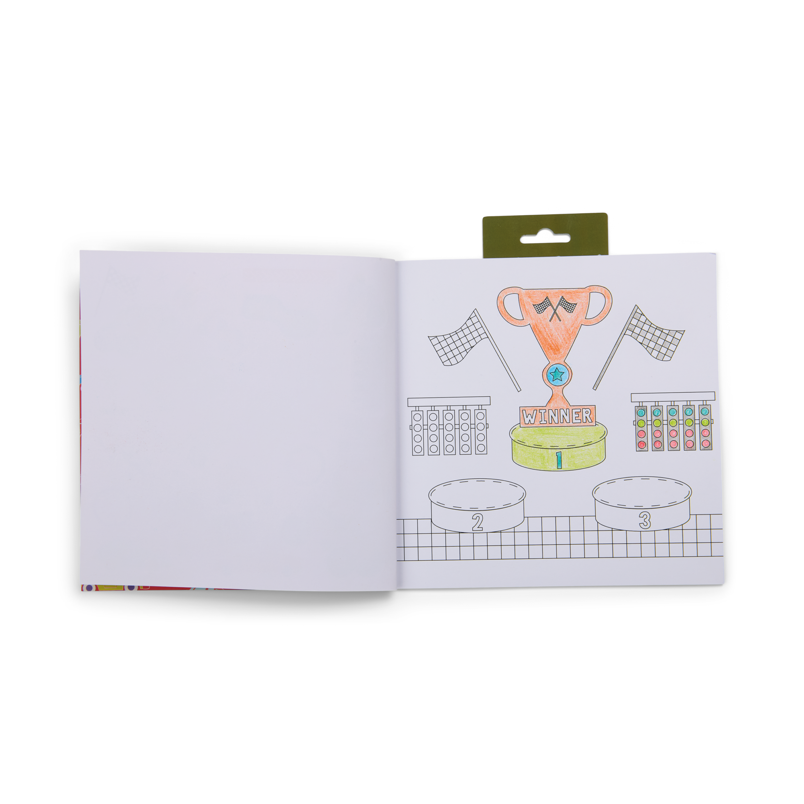 - Includes 1 sticker sheet and 12 fun pages to colour-in!