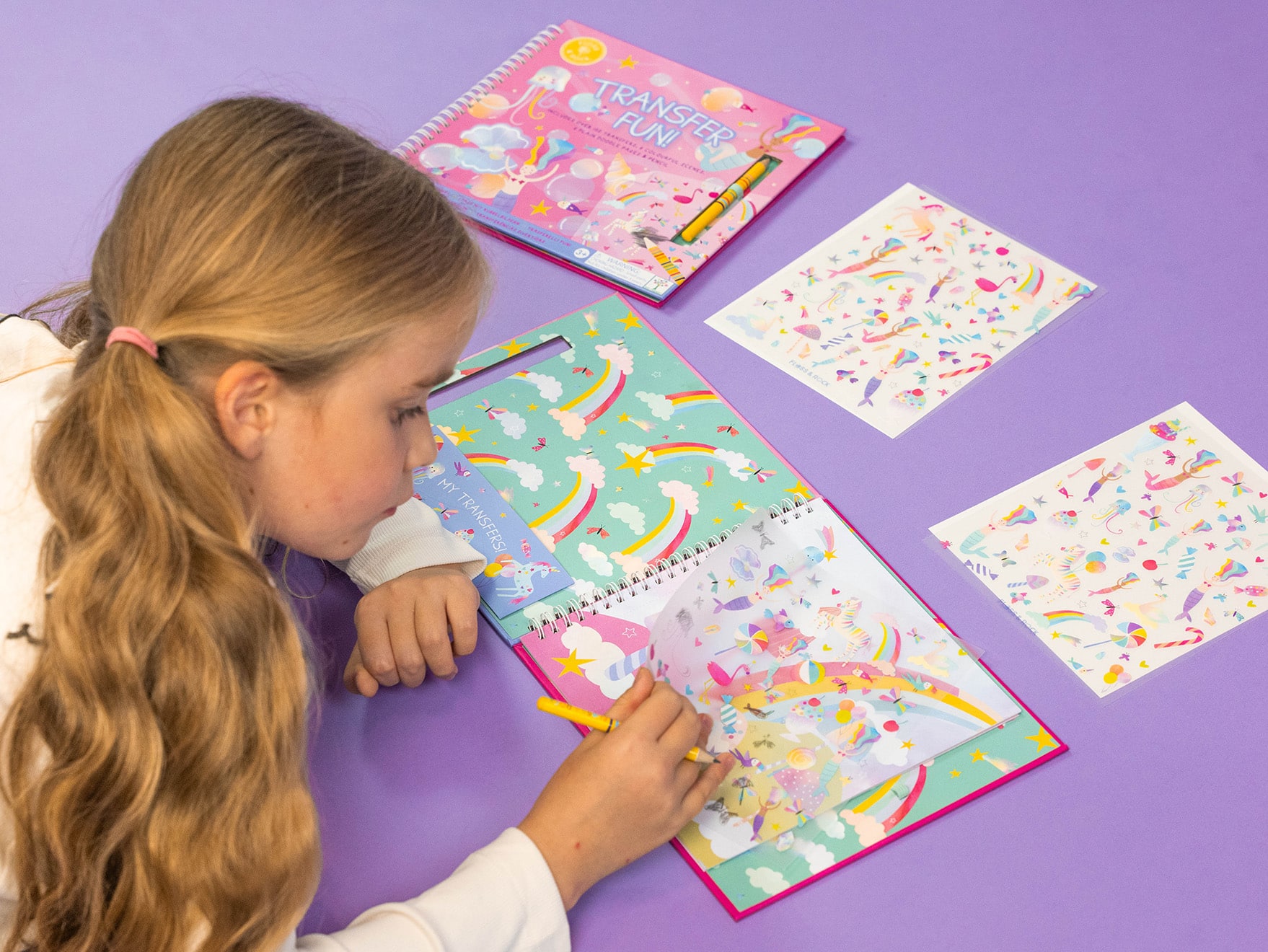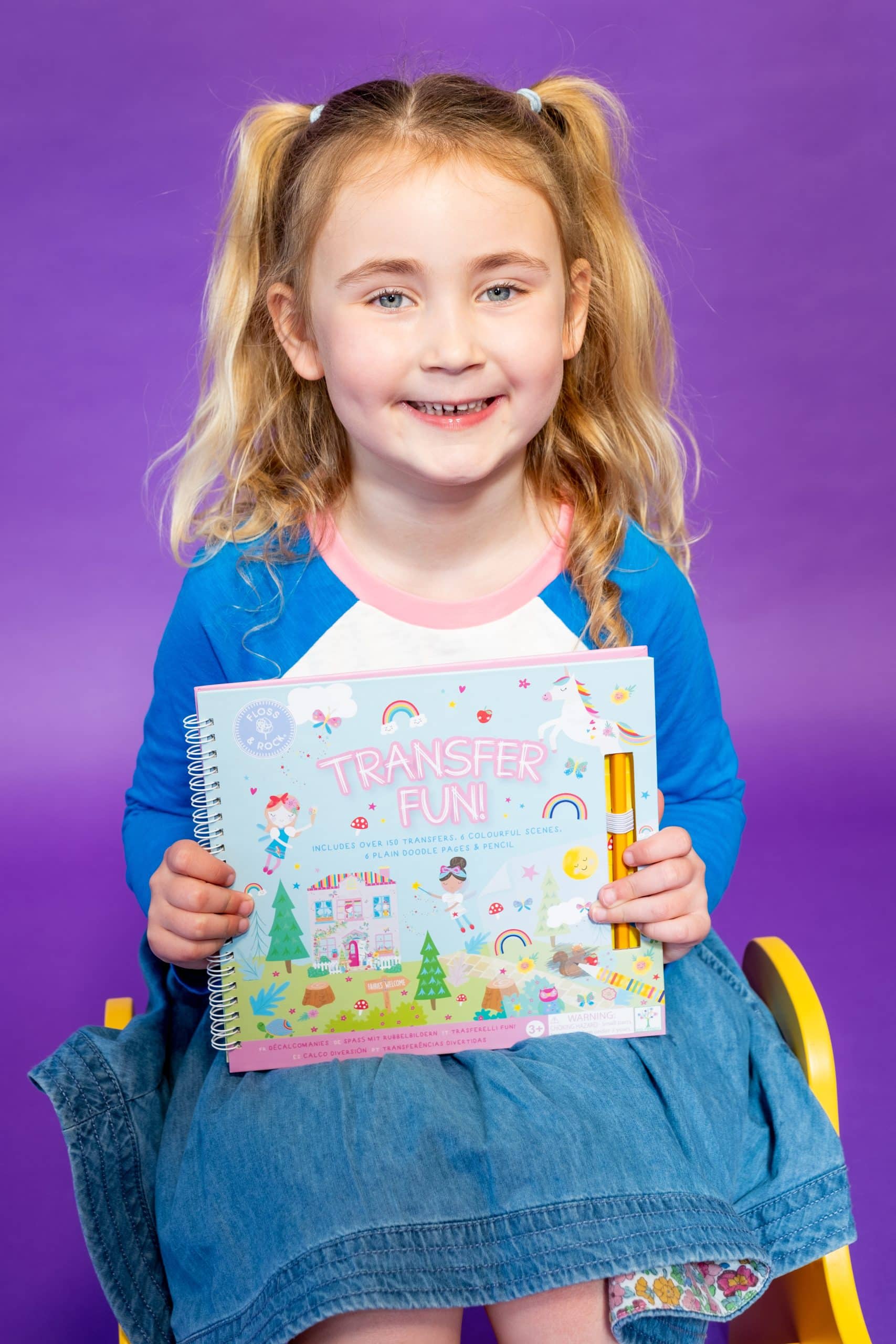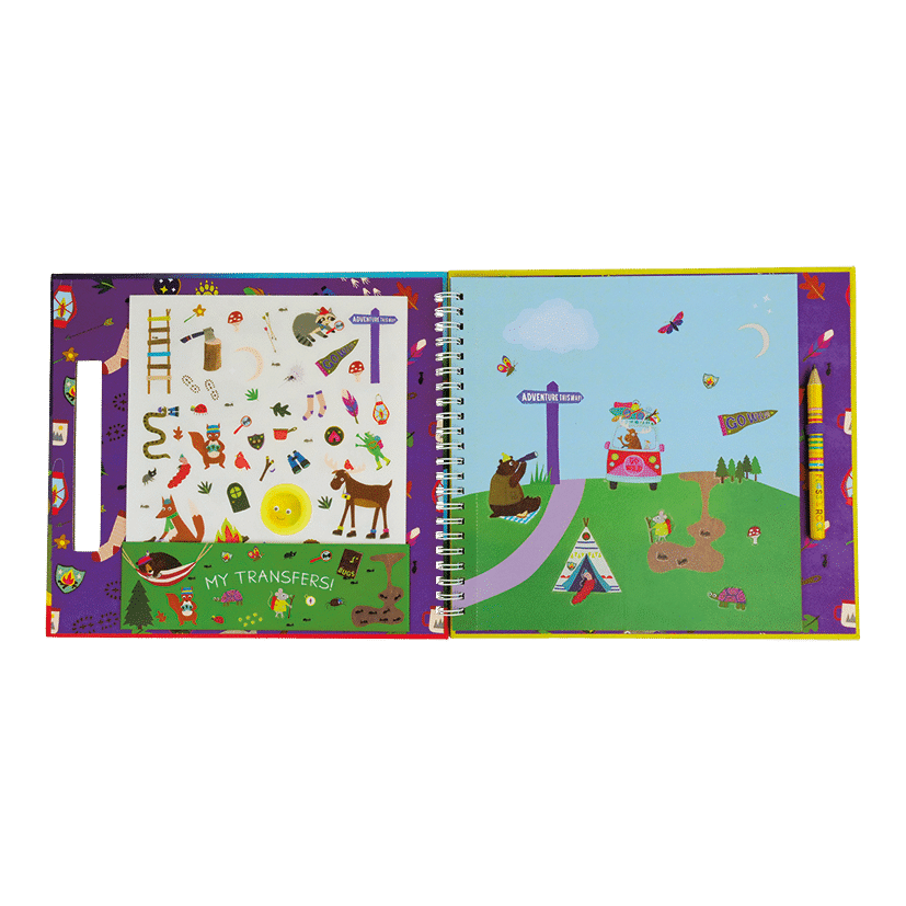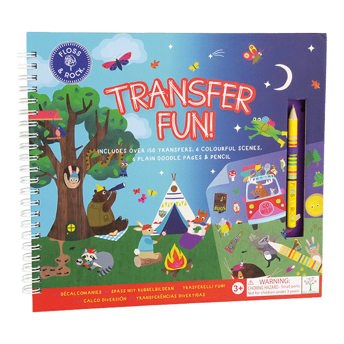 Open the spiral bound book to find all your transfers neatly stored in the ‘My Transfers’ pocket, find your chosen illustration and flick through the pages to find the perfect scene to put them onto. Scratch over the top of the drawing with the Floss & Rock pencil provided and lift up the sheet, like MAGIC you’ll find them transferred onto the page. Spend many happy hours sparking creativity and making beautiful pictures.