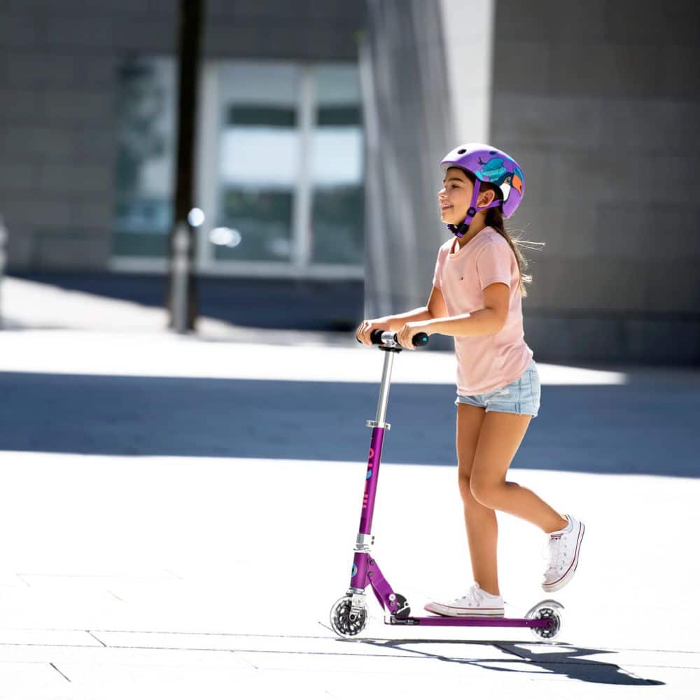 A lightweight, foldable easy to manage and durable two wheeled push scooter. The Micro Sprite steers like a bike allowing your child to master their scooter quickly. The Micro Sprite push scooter is easy to fold making it quick to store and convenient to transport. The kickstand enables the scooter to stand upright by itself. The handlebar height on the Micro Sprite is adjustable to suit your child this means your child won’t grow out of it quickly. In our opinion the Micro Sprite scooter is simply the best first 2 wheeled scooter for younger children.