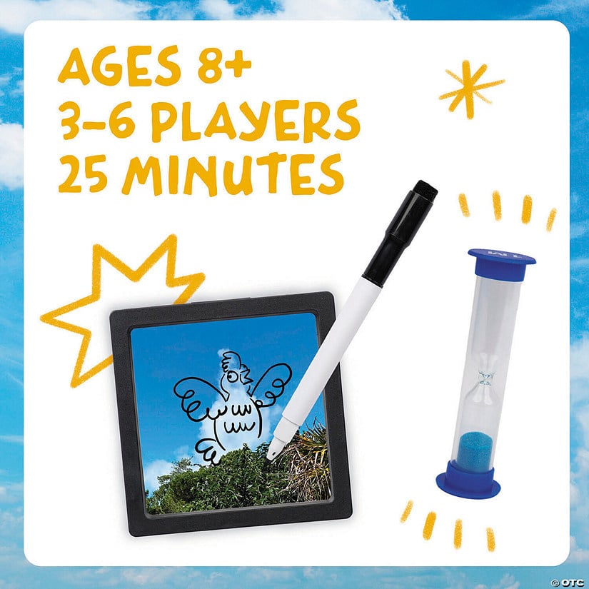 • Includes 250 Cloud Cards, 6 Cloud Card Frames, 6 dry erase markers, 6 Cloud Tokens, one-minute sand timer, scorecard and instructions