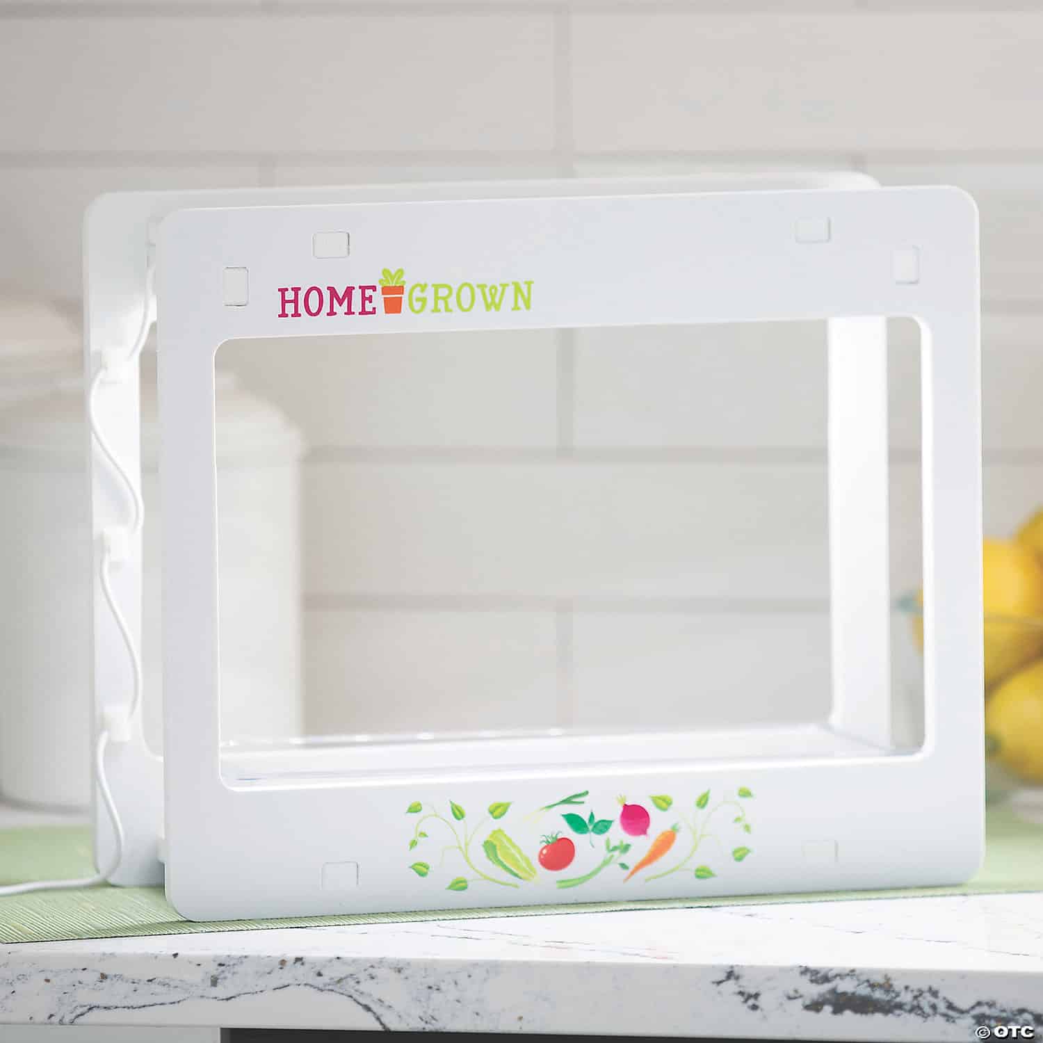 The slim design tucks neatly onto most any countertop or other indoor space, and the plastic bottom tray holds seed pots and helps contain water spillover. Just plug it in and watch your indoor garden grow!