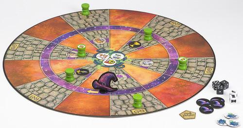The object of the game is to get the three correct ingredients into the Cauldron before all six of the paths are blocked. The evil Wizard has cast a spell to destroy the kingdom! You have the power to create a potion to break the spell, but you must work together. Your quest is to find the three correct ingredients hidden under the potion bottles and move them up the paths and into the Cauldron before the Wizard blocks all of the paths.