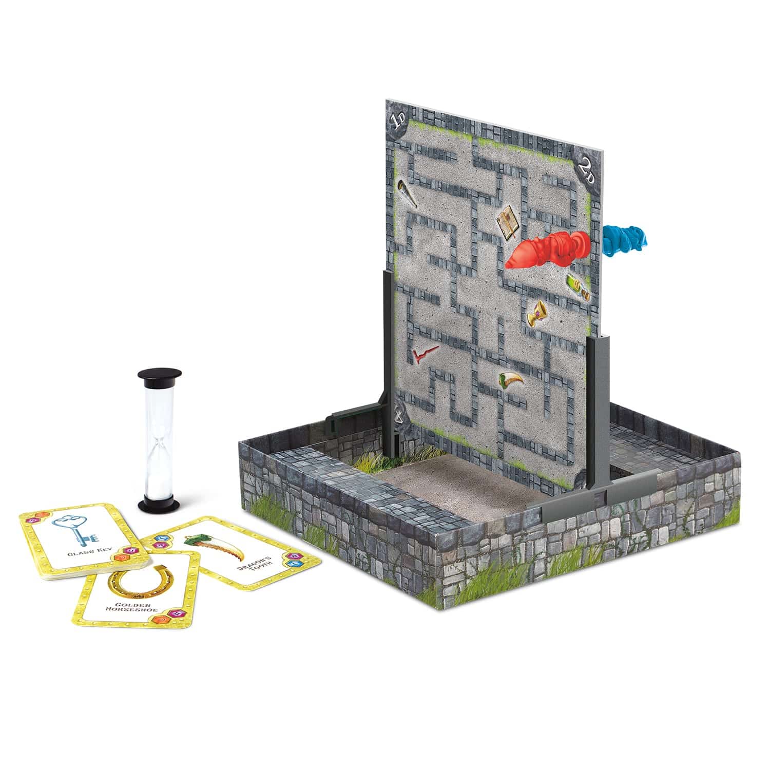 Someone has stolen the Queen’s treasures and has dropped them in the castle’s twisty maze. Luckily, the trusty gnomes are here to help! Players work together to maneuver the magnetic gnome movers around the mazes to collect all the treasures before time runs out. Use communication, strategy and quick thinking to find the treasures and win the game!