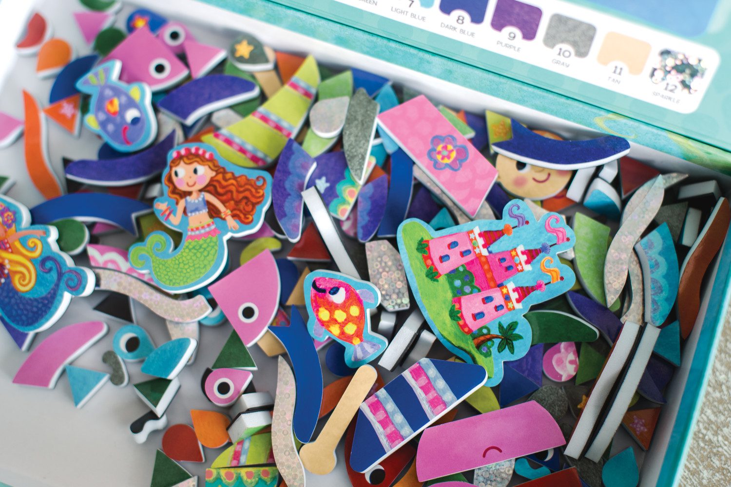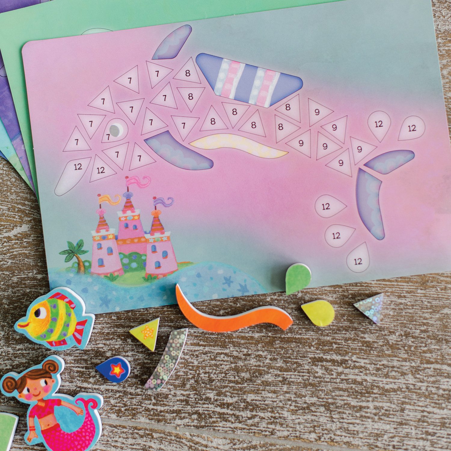 Set includes the Mermaid Island Board game and Mermaid Sparkle Mosaics