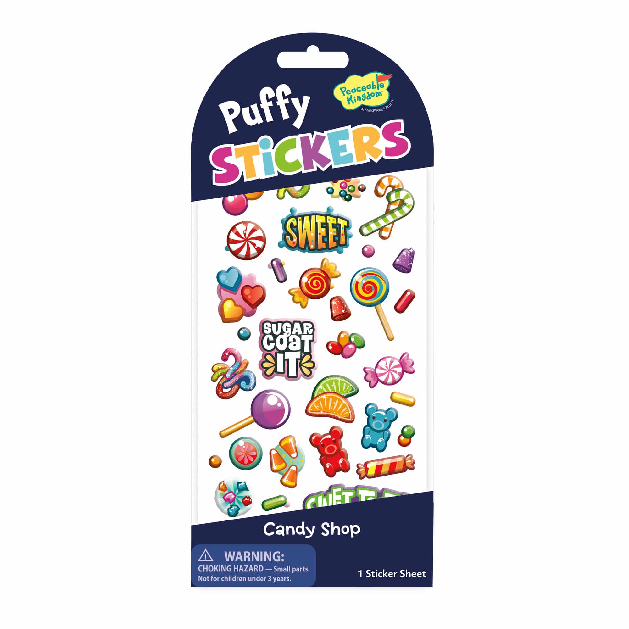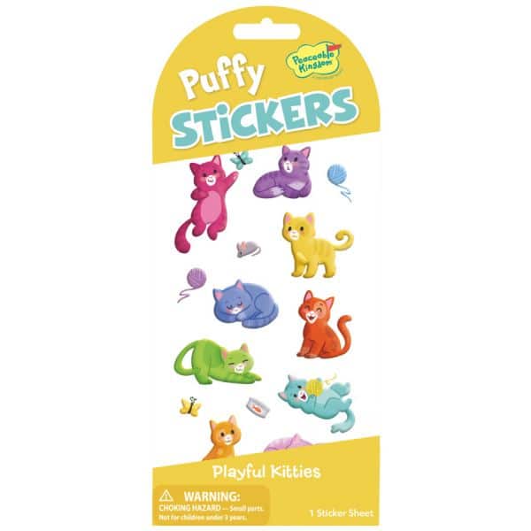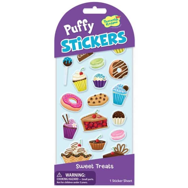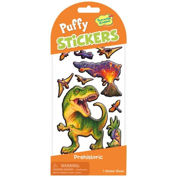 This sticker pack includes one sheet of acid-free Puffy Stickers. Printed with vegetable-based inks on recycled paper. Made for kids ages 3 years old and up.