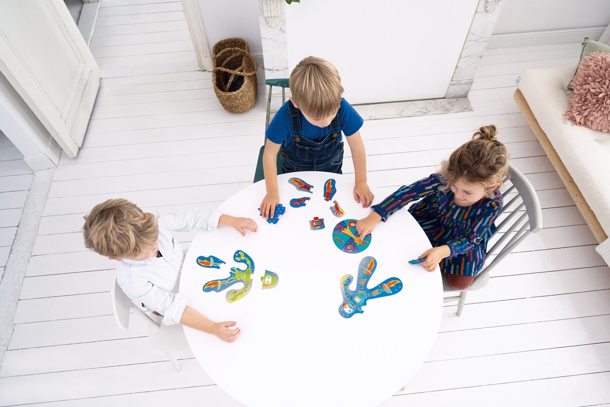 • Game preparation: Each player collects the 6 puzzle pieces for 1 specific puzzle. To find the right pieces, look at the stars on the back. If there are only 2 players, you may pick 2 puzzles each. To make it harder, keep all the puzzle pieces together in the centre.