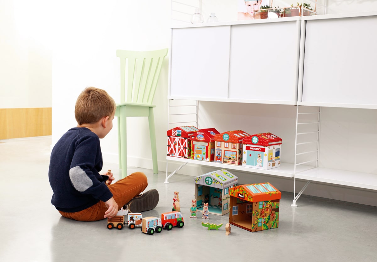 Safari – On Safari there’s loads to discover. Vroom Vroom! The jeep’s arriving. Playfully teach the littlest ones about the animals of the African Savanna. The box turns into a playhouse. Beautiful wooden animals and jeep included