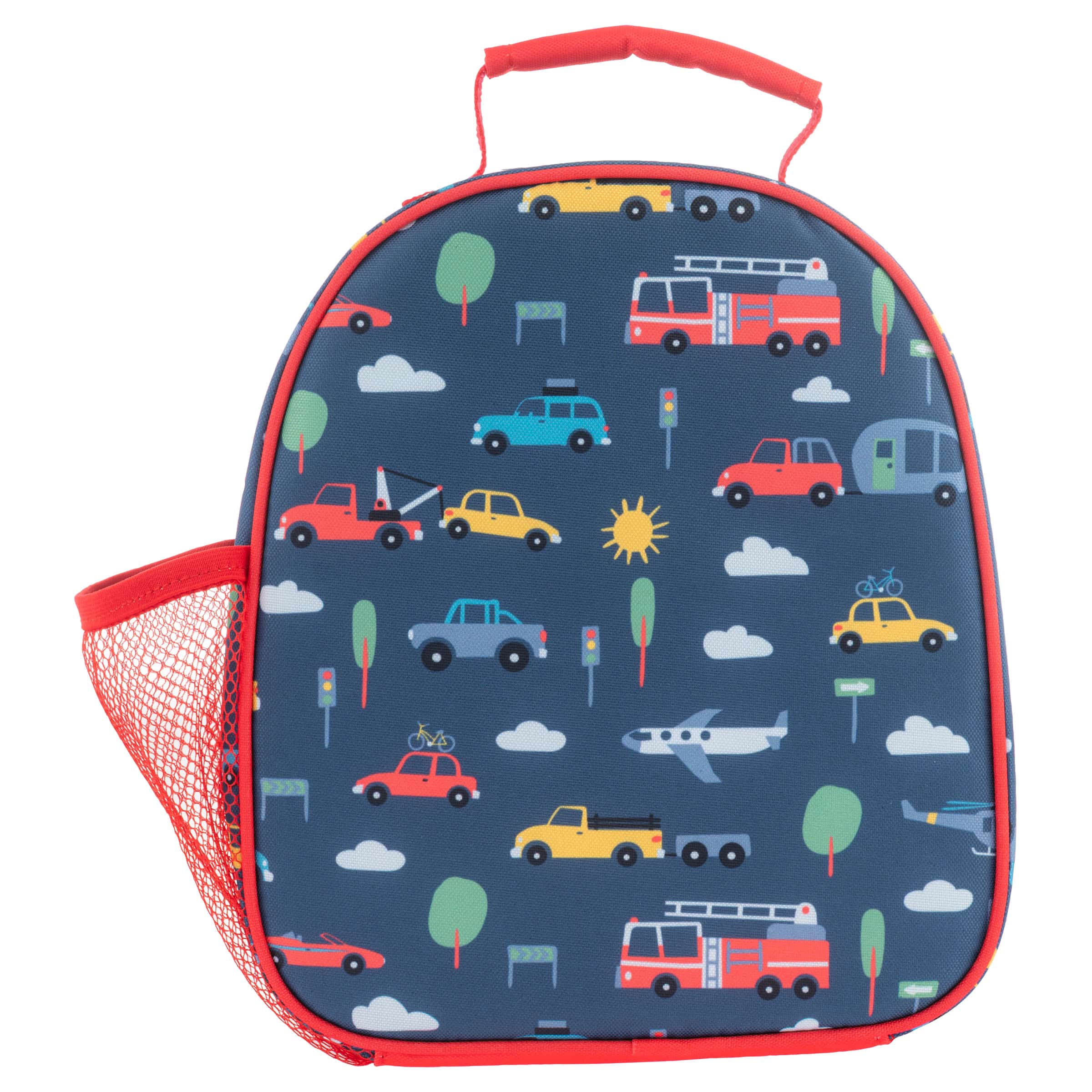 Kids will be “all over” the Stephen Joseph All Over Print Kids Lunch box. Perfectly sized for school age kids, these fun and functional lunchboxes are not only well designed but durable. Large enough to carry your children’s lunch and snack needs for school or even a day trip or picnic. The All Over Print Lunchbox features a spacious insulated interior compartment, an outside storage pocket– perfect for mealtime accessories like utensils and napkins, an interior elastic and mesh pocket, and an exterior mesh water bottle holder. Be sure to gear up with the matching Stephen Joseph All Over Print Backpacks.