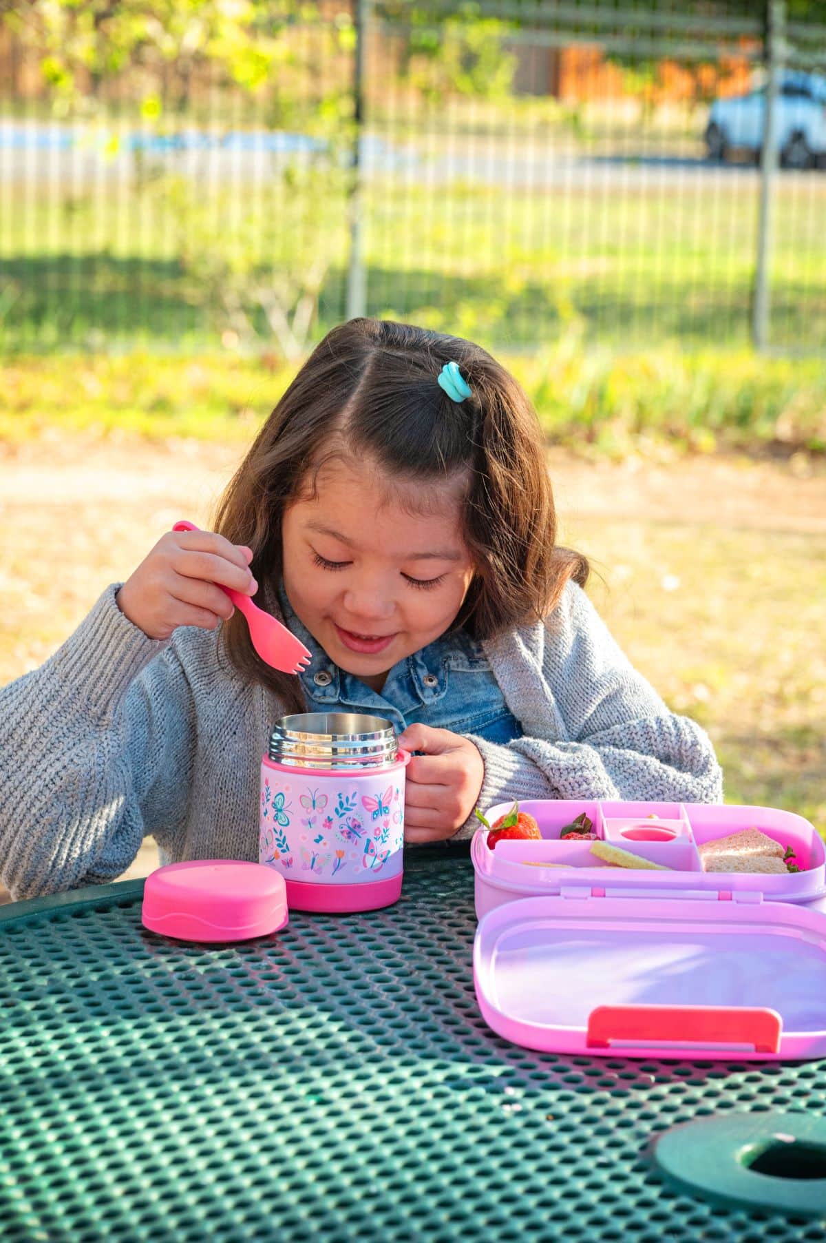 Plus, the coordinating spork eliminates the need for disposable cutlery. With adorable designs, your child will be excited for mealtime!